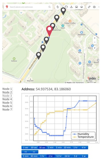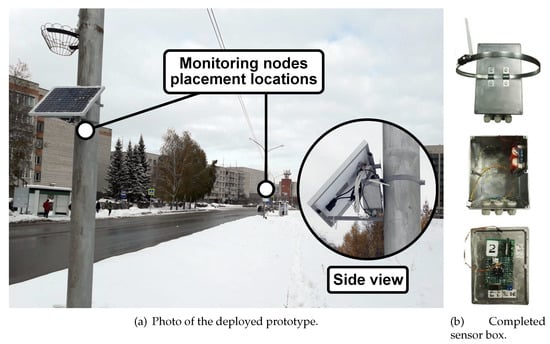 The main challenges of urban environmental monitoring are the deployment simplicity and flexibility in terms of the mesh network reconfiguration [] as well as resistance to the “malicious” sensor connection []. The main problems include: (i) the difficulty of initializing a network with a large number of devices; (ii) connecting a new sensor to an existing network; (iii) network scalability; (iv) the ability to use a trusted sensor in a network location other than the legal installation place; and (v) the ability to detect a malicious device (sensor) presence.