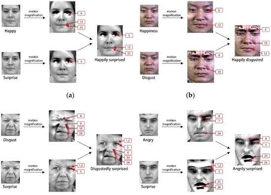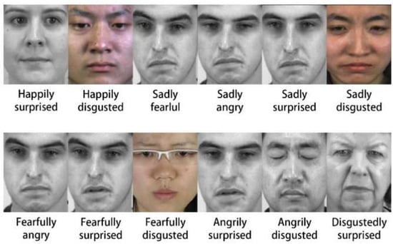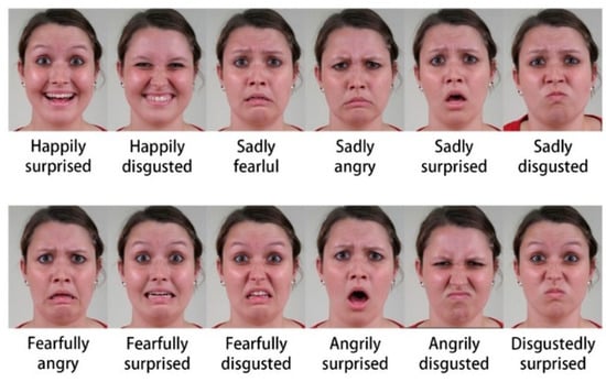 Psychologists agree that understanding different types of facial expressions is essential for developing human emotional cognition and generating human-computer interaction models [7]. Though the majority of individuals can indeed recognize many different kinds of emotions, researchers have been limited to the six basic emotional categories [8,9]. Individuals create an abundance of facial expressions throughout their daily lives as they express their inner states and psychological needs [10]. For example, people regularly produce a happily surprised expression and observers do not have any problem distinguishing it from a facial expression of angrily surprised