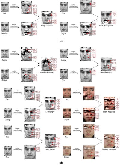 In general, most ME recognition focuses on six basic emotions common in popular culture [1]. Unlike ordinary expressions (i.e., macro expressions), the psychological state reflected by MEs is often the closest to the real emotion of human beings. Consequently, MEs should not only be associated with single basic emotional categories, but also expand the diversity in emotional classes. Therefore, we need to build a ME database based on complex emotions. That is to say, “sadly angry” is a discrete category with unique facial representation compared to “angry” or “sadness”. Compound MEs are generally composed of two basic MEs. Furthermore, each externalized emotion has a corresponding unique facial expression, which is composed of the same muscle movements in individuals of different cultures and backgrounds [11]. In this paper, we generated a compound ME database (CMED) on the basis of five basic ME databases [12,13,14,15,16] which are cross-culturally applicable. As a result, the CMED database will aid researchers to train and evaluate their algorithm.