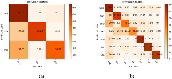 Figure 13b shows the accuracy of various emotional categories in the CMED. The emotional categories with larger sample sizes were recognized higher recognition rates. The algorithm was particularly accurate on “negative” and “negatively surprised” classes, because of the large number of samples compared with other categories. Compound emotions depend on the AUs of basic emotions, so there is a subordinate relationship between them to a certain extent. It is difficult for machines to distinguish compound MEs and their subsets. For example, “negative” is the dominant component of “negatively surprised”, so these two kinds of emotional states share information and AUs among themselves. The experimental results have indicated that PN had a 10.27% misunderstanding rate on negative emotions and a 7.94% misunderstanding rate on surprise emotions. This is because this compound MEs are composed of these two basic emotions and share the facial movement information. The compound MEs were misrecognized at a higher rate on their main basic MEs, but not on unwanted emotional states. From the Figure 12, we can also understand that there are some differences between compound MEs and basic MEs. The generation and recognition of CMED broaden human understanding and recognition of emotion. Overall, the proposed method executed satisfactory recognition performance on the basic ME databases and CMED.