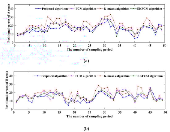 Positional errors for these the algorithms. (a) Positional errors with these algorithms for target A; (b) Positional errors with these algorithms for target B.