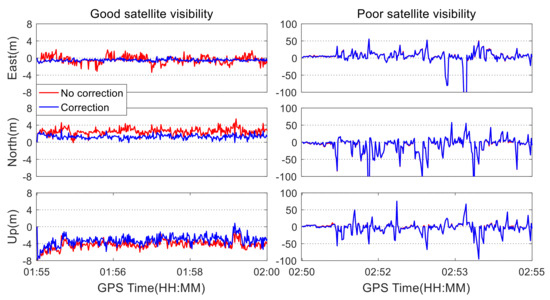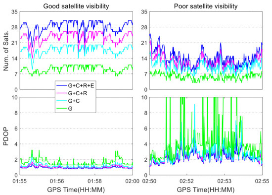 The global navigation satellite system (GNSS) single point positioning (SPP) technology has been widely used in navigation since the advent of the Global Positioning System (GPS) [1,2]. For a long period of time, the SPP technology has been mainly implemented by a single constellation of GPS. With the revitalization of the GLObal NAvigation Satellite System (GLONASS), along with two newly emerging constellations, namely the BeiDou navigation satellite system (BDS) and the Galileo system, the combined navigation by joint use of GPS, GLONASS, BDS, and Galileo constellations has become a new trend [3,4,5].