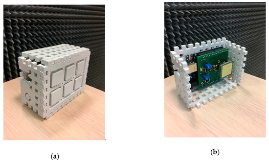 Bioradar prototype photos: (a) bioradar assembly; (b) housing panels removed.