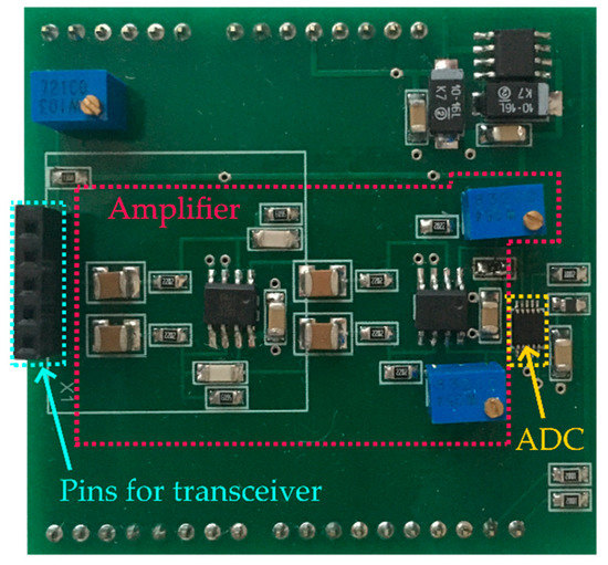 As it can be seen in Figure 3, the customized amplifier and ADC were placed on a shield for the Arduino UNO board. The K-LC5 transceiver was plugged into the shield through pins.