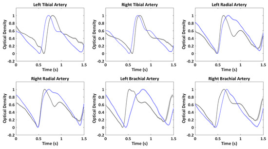 - Nitzan, M.; Khanokh, B.; Slovik, Y. The difference in pulse transit time to the toe and finger measured by photoplethysmography. Physiol. Meas. 2002, 23, 85. [Google Scholar] [CrossRef]