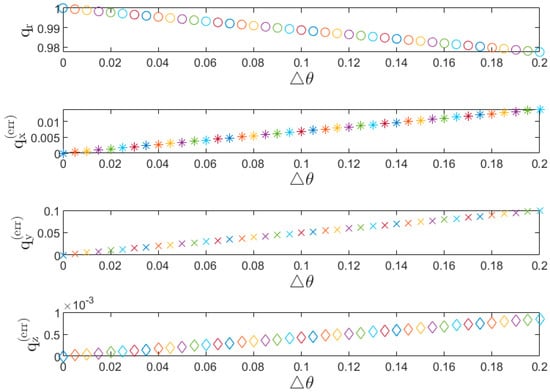 According to Equation (29), the quaternion with measurement error in the pitch angle can be further approximated by