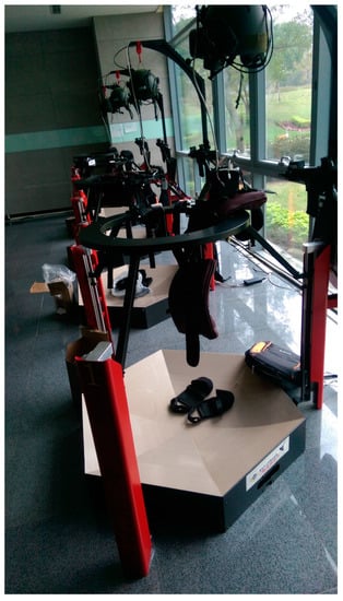 - Park, S.Y.; Ju, H.J.; Lee, M.S.L.; Song, J.W.; Park, C.G. Pedestrian motion classification on omnidirectional treadmill. In Proceedings of the 15th International Conference on Control, Automation and Systems (ICCAS), Busan, Korea, 13–16 October 2015. [Google Scholar]