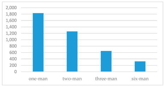 Finally, we evaluated a six-man team of all participants in the rescue task, because standard deployment for a real live mission is a six-man entry team. The mission time decreased by 2′28″ with respect to the three-man experiment with experienced participants. The experimental results for mean times with different numbers of participants are shown in Figure 21. In addition, death rate (hit rate) revealed another difference between single and multiple participants. From the results, the mean of death rate (hit rate) was 1.5 shots/per mission when a single participant interacted with the system. However, the mean of death rate decreased to 0.38 shots/per mission when multiple participants interacted with the system.
