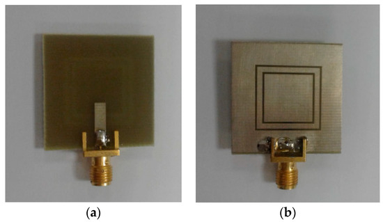 Fabricated antenna, (a) top view and (b) bottom view.