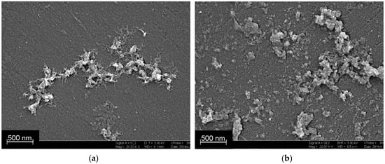 The adsorption of DNA onto PANI layer and its coverage the polymer in following potential cycling were confirmed by SEM (Figure 4). DNA forms elongated aggregates consisted of particles different in size and shape that are distributed onto the even support surface. Deposition of PANI onto the DNA resulted in formation of a rough surface with particles both corresponded to the shape of DNA aggregates and those much lower in size. This means DNA remains adsorbed on the surface and stimulate electropolymerization of new PANI molecules by template effect.