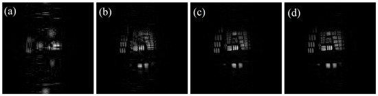 Reconstruction results under different compressive sampling ratios. (a–d) are reconstruction results with the sampling ratio of 0.1, 0.25, 0.5 and 0.6. The image size is 256 × 256 pixels. The measurement matrix is sparse binary random matrix.