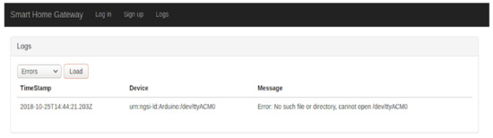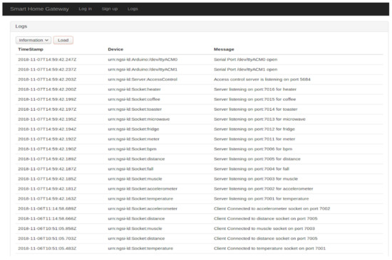 Additionally, a login/sign-up portal and other dedicated pages are provided especially for the logs (i.e., Figure 15), errors and the alerts detected (i.e., in case of an abnormality) inside the smart home.