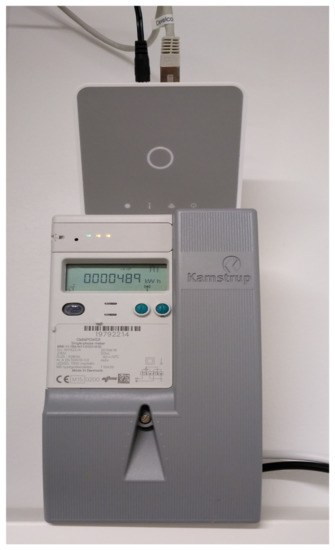 In addition to the smart plugs, a smart meter from the Danish manufacture Kamstrup was also deployed for measuring the total consumption. This model is widely installed in the Danish homes. The meter is connected to the energy home gateway using a ZigBee module for local measures as well as to a data concentrator, which provides the utility with the demand profiles for billing purposes. The energy home gateway, shown above the smart meter on Figure 10, was also manufactured by the Danish company Develco and contains the embedded ZigBee coordinator attached to an ARM9 CPU which runs a Linux OS. The system is fully flexible and programmable so a JAVA application was deployed. This application exposes a RESTFul API that allows for the data acquisition and actuation on the smart plugs.