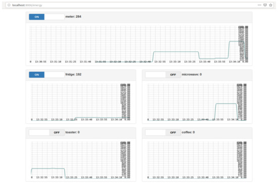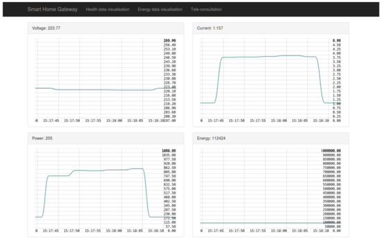 Another portal is added in order to visualize the energy consumption of the different smart home appliances, measured by the smart plugs, all along the day as shown in Figure 14.