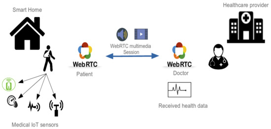 As shown in Figure 16, the patient starts a WebRTC [42] multimedia session with the remote doctor, and in the same time, the wearable medical devices attached to the body of the patient, and also connected to the platform, starts sending real-time health data. Thus, using the information from the direct interaction with the patient and also the information provided by the medical sensors, we believe that the doctor can provide a better remote diagnosis of the state of health of the patient, and thus better remote medical services.