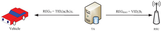 The vehicle and RSU are registered at TA. TA assigns the corresponding registration information to them, as shown in Figure 4.