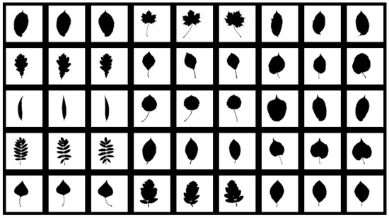As the FMSCCD is a shape descriptor, it is necessary to evaluate the performance on plant leaf retrieval, which is a common application for shape descriptors. Swedish Plant Leaf is a database of plant leaf images. It contains 15 classes, each containing 75 shapes, so a total of 1125 shapes are in the database. Some shapes in the database are shown in Figure 13.