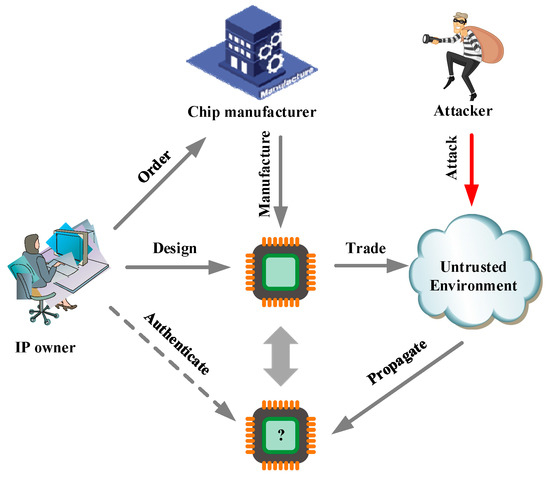 Notwithstanding this, the constraints added at higher level caused some unpredictable issues [27]. The primary purpose of IP protection methods is to prevent IP copyright in chips from being inappropriately accessed. In practice, the authentication system is implemented with passwords and key encryption, whose security is insufficient. Malicious attackers can perform deep attacks on the electronic chip, such as cloning or collusion attacks. If the chip has higher requirements on the security level, such a system cannot meet the demands [28].