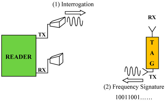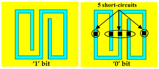 - Jang, H.; Lim, W.; Oh, K.; Moon, S.; Yu, J. Design of Low-Cost Chipless System Using Printable Chipless Tag with Electromagnetic Code. IEEE Microw. Wirel. Compon. Lett. 2010, 20, 640–642. [Google Scholar] [CrossRef]