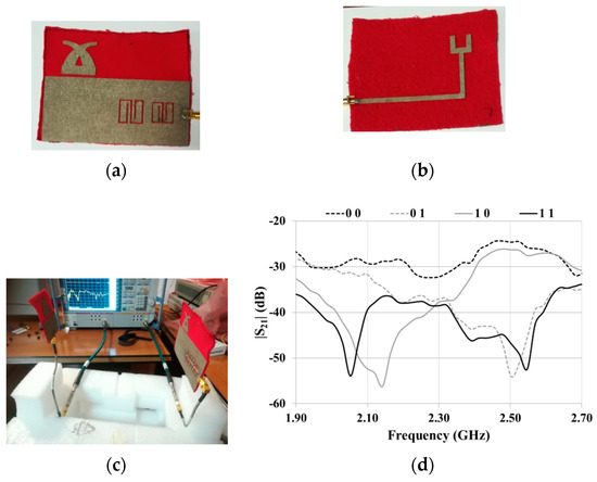 - Kiourti, A.; Lee, C.; Volakis, J.L. Fabrication of Textile Antennas and Circuits With 0.1 mm Precision. IEEE Antennas Wirel. Propag. Lett. 2016, 15, 151–153. [Google Scholar] [CrossRef]