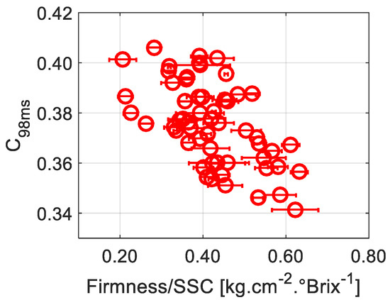 C98ms as a function of the ratio of the firmness to the SSC level, a better correlation can be seen in