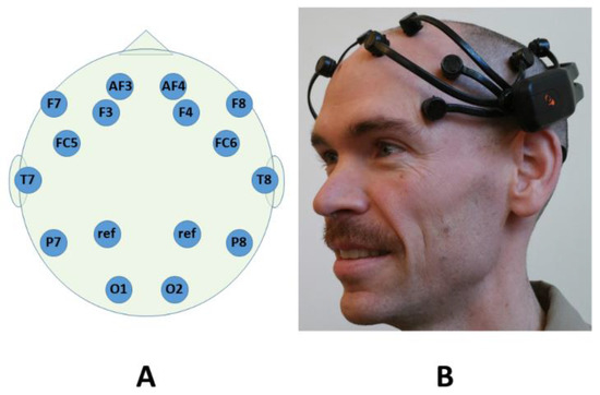 Recent advancements in technology have made neural signal acquisition and processing more affordable and portable, and opened up the possibility of characterizing the human stress response in mobile environments outside the laboratory or clinic. One example of such a system is the Emotiv Epoc neuroheadset (Emotiv, San Francisco, CA, USA), shown in Figure 1. The headset was originally targeted at gaming, artistic, market research, and low degree-of-freedom brain–computer interface applications (e.g., wheelchair control), but it can be combined with open source software (e.g., BCI2000 [23]) for use in research applications. The Epoc headset is at least an order of magnitude less expensive than a clinical-grade EEG system. It also does not require the use of a conductive gel, although it does require applying a sterile saline solution to the electrodes.