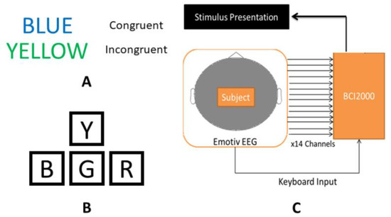 - Atchley, R.; Klee, D.; Oken, B. EEG Frequency Changes Prior to Making Errors in an Easy Stroop Task. Front. Hum. Neurosci. 2017, 11, 1–7. [Google Scholar] [CrossRef] [PubMed]