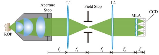 Here , , and are respectively the focal lengths of the MO, MLA, L2 and L1. Besides, is the pixel’s pitch, p is the MLA’s pitch, and s is the integer number of shifted pixels applied to the focal stack. The use of defocus cue is then directly applicable to the generated focal stack. Due to these basic considerations, our approach aims to create a depth map by combining these two types of vision cues that are suitable for light field images.