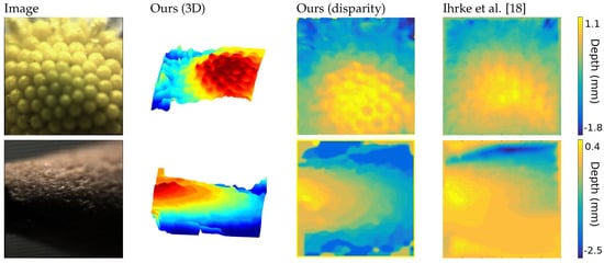 The error is lower in the proposed approach, as well as the standard deviation, confirming the accuracy and the robustness of the method. The algorithm based on neural network [49] obtains similar performances but still exhibits larger errors, as suggested from the higher variance value, while the shape from focus approach [48] fails in achieving high accuracy as expected, being the most naive approach without post-processing. Nevertheless, it shows that the generated images constitute a challenge for off-the-shelf methods for the disparity estimation and therefore enhance the importance of tackling such challenges.