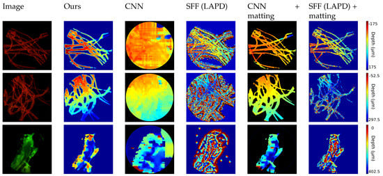 A common goal in microscopy is to estimate the three-dimensional structure of the observed sample. Industrial solutions reach a high accuracy of the reconstruction using different techniques as confocal microscopy [11], interferometry or variational focus [12], scanning electron microscopy (SEM) [13], optical profilometry [14,15], or stereo cameras [16].