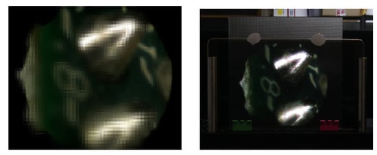 - Jung, J.H.; Hong, K.; Park, G.; Chung, I.; Park, J.H.; Lee, B. Reconstruction of three-dimensional occluded object using optical flow and triangular mesh reconstruction in integral imaging. Opt. Express 2010, 18, 26373–26387. [Google Scholar] [CrossRef]
