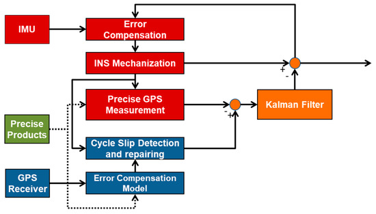 - Altmayer, C. Enhancing the integrity of integrated GPS/INS systems by cycle slip detection and correction. In Proceedings of the IEEE Intelligent Vehicles Symposium, Dearborn, MI, USA, 3–5 October 2000; pp. 174–179. [Google Scholar]