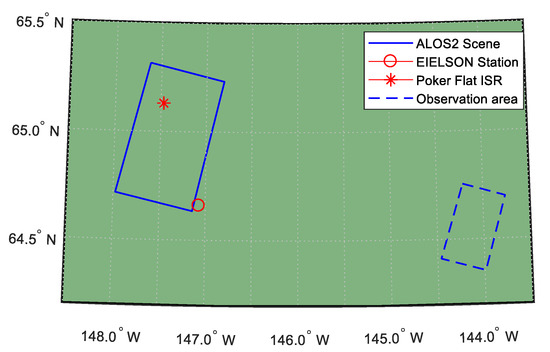 Geographic relationship of ALOS-2 scene, EIELSON station, and Poker ISR station.