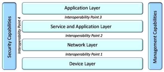 A special viewpoint of the schematic representation of the ITU-T Y.2060 IoT Layered architecture along with the interoperability points is illustrated in Figure 3.