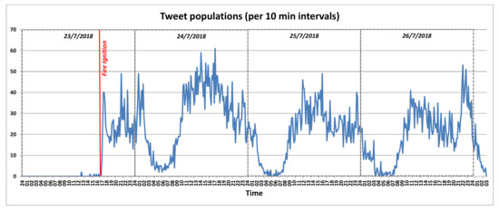 - Wang, Z.; Ye, X.; Tsou, M.H. Spatial, temporal, and content analysis of Twitter for wildfire hazards. Nat. Hazards 2015, 83, 523–540. [Google Scholar] [CrossRef]
