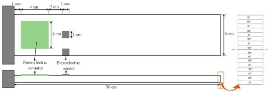 In this study, a single-input-multi-output (SIMO) system is used to demonstrate the effects of sensor partial debonding and structural delamination on the active vibration control of a smart laminated composite plate. The system consists of a cross-ply laminated composite plate with two piezoelectric sensors and one piezoelectric actuator, as shown in Figure 2.