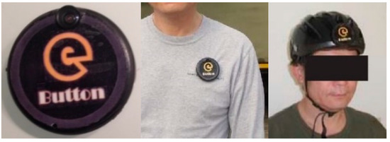 Previously, our laboratory developed eButton (as shown in Figure 9), a disc-like wearable life logger the size of an Oreo cookie, for studying human diet, physical activity, and sedentary behavior [15,45]. eButton is equipped with a set of sensors, including a camera, an IMU, and other sensors that were not used in the current study, for measuring the temperature, lighting, and atmospheric pressure. The camera has a resolution of 1280 × 720 pixels. To save power, the camera acquires one image every four or more seconds. The built-in IMU contains a three-axis accelerometer and a three-axis gyroscope, both of which have a sampling frequency of 90 Hz.