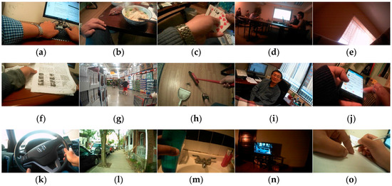 In recent years, wearable smart devices have advanced rapidly, and various smart wearable devices, such as Google Glass, Microsoft SenseCam, and Apple Watch have become very popular. With the help of a variety of sensors integrated in wearable devices, such as cameras, inertial measurement units (IMUs), and global positioning system (GPS), the wearer’s state data (called egocentric or first-person data) can be automatically collected and recorded over extended periods. Through analysis of these egocentric data, real-time monitoring and state evaluation of the wearer can be realized, which results in egocentric data having wide application prospects in medical care [1,2], smart homes and offices [3], security monitoring [4], and other fields. As egocentric activity recognition is the basis of subsequent activity analysis, it has an important research value and has attracted high interests in the fields of human activity recognition and artificial intelligence [5,6].