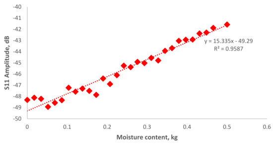 Correlation of S11 amplitude against moisture content in Europe EN 206-1-2013 correlation in 2.43 GHz.