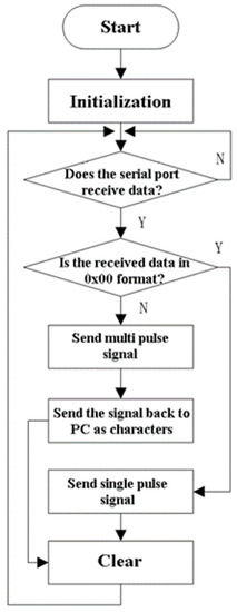 The main program handles the following tasks: (1) the initialization of system and peripherals; (2) data reception; (3) stress wave emission; (4) signal return. The flow chart of the main program is shown in Figure 9.