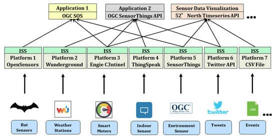 - Chaturvedi, K.; Kolbe, T.H. InterSensor Service: Establishing interoperability over heterogeneous Sensor Observations and Platforms for Smart Cities. In Proceedings of the 4th IEEE Annual International Smart Cities Conference (ISC2 2018), Kansas City, MI, USA, 16–19 September 2018; p. 8. [Google Scholar]