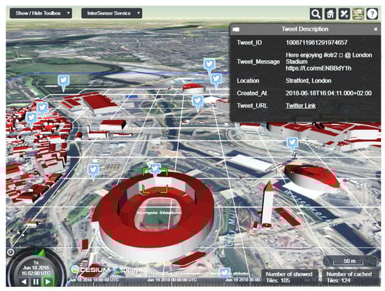 - Santhanavanich, T.; Schneider, S.; Rodrigues, P.; Coors, V. Integration and Visualization of Heterogeneous Sensor Data and Geospatial Information. ISPRS Ann. Photogramm. Remote Sens. Spat. Inf. Sci. 2018, IV-4/W7, 115–122. [Google Scholar] [CrossRef]