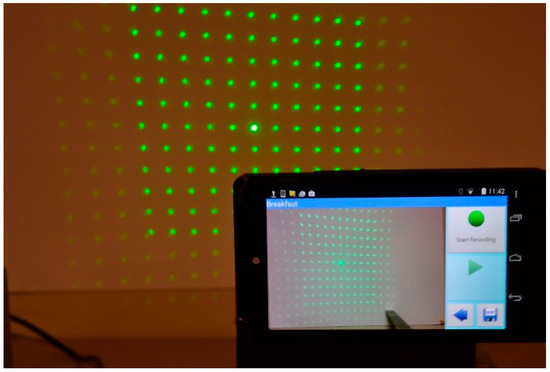 To calibrate the device, we need to know how the laser dot pattern changes on a flat surface as we move the phone away from that surface. The simplest way to do this is by taking pictures of the laser grid at different distances from the phone. A white planar surface is used to project the laser grid and determine the pixel values of each dot in the image. Through calibration, a series of parallel and planar images within a valid range of depths are acquired from the camera, each containing a grid of dots. The pixel positions of the laser dots in the image change as a function of distance from the image plane, forming a line segment that can be mapped in 3D space. The steps required to generate the calibration data are as follows: