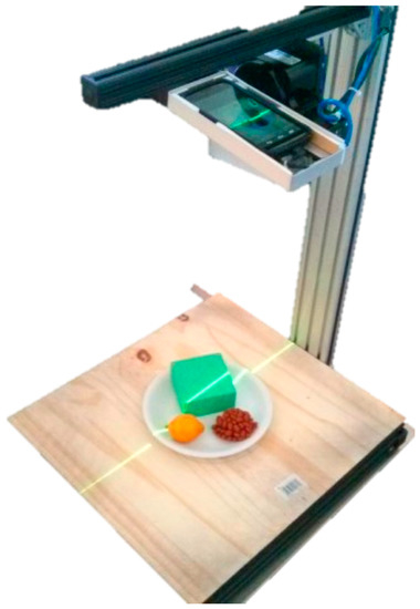 - Shang, J.; Duong, M.; Pepin, E.; Zhang, X.; Sandara-Rajan, K.; Mamishev, A.; Kristal, A. A mobile structured light system for food volume estimation. In Proceedings of the 2011 IEEE International Conference on Computer Vision Workshops (ICCV Workshops), Barcelona, Spain, 7 November 2011; pp. 100–101. [Google Scholar]
