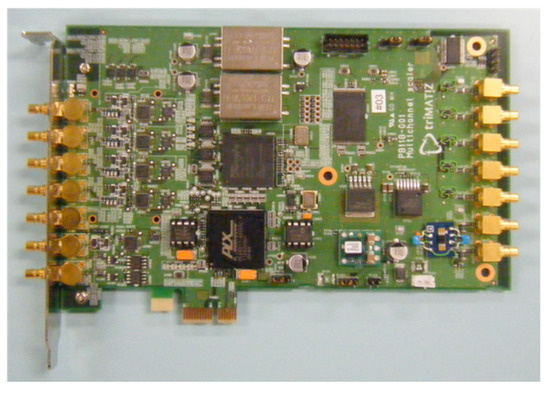 The system clock is of 500 MHz. Power consumption is 7 W, that is, <2 W for each channel. The board’s features and specifications are shown in Figure 7 and Table 4. The bin width and number, repetition frequency, signal threshold to count and trigger levels can be adjusted. The highest resolution defined by the BIN width is 5 ns, which is equal to a range resolution of 0.75 m. The minimum summation time, up to data transfer to a PC, is 0.2 s. The short summation time can capture atmospheric and gas activities.