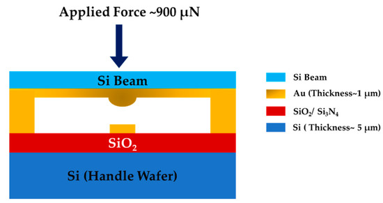 In this work, we fabricated two separate microcontacts through an SOI micromachined process to mimic an actual MEMS switch. Figure 8 shows the schematic diagram of our proposed device structure.
