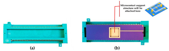 After fabricating the microcontact support structure, it was attached to a package using crystal bonder. Then, we wire bonded it to the package. In this way, we eradicated the probe requirement. Besides, it helped us to precisely measure the voltage and current across the contacts. Next, we put the package into a carrier socket. The socket had pins for each of the wire bonds. Figure 11 shows a socket and a socket with package.
