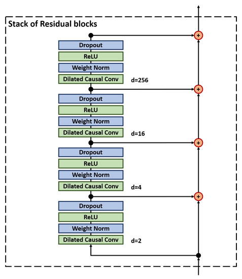 - Bai, S.; Kolter, J.Z.; Koltun, V. An Empirical Evaluation of Generic Convolutional and Recurrent Networks for Sequence Modeling. arXiv, 2018; arXiv:1803.01271. [Google Scholar]