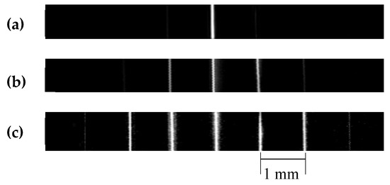 B-scan images of wire phantom for (a) single-focal point transducer T1, (b) three-focal points MFP transducer T2, and (c) five-focal points MFP transducer T3.