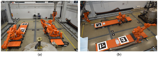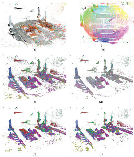 - Ujkani, E.; Dybedal, J.; Aalerud, A.; Kaldestad, K.B.; Hovland, G. Visual Marker Guided Point Cloud Registration in a Large Multi-Sensor Industrial Robot Cell. In Proceedings of the 2018 14th IEEE/ASME International Conference on Mechatronic and Embedded Systems and Applications (MESA), Oulu, Finland, 2–4 July 2018; pp. 1–6. [Google Scholar] [CrossRef]